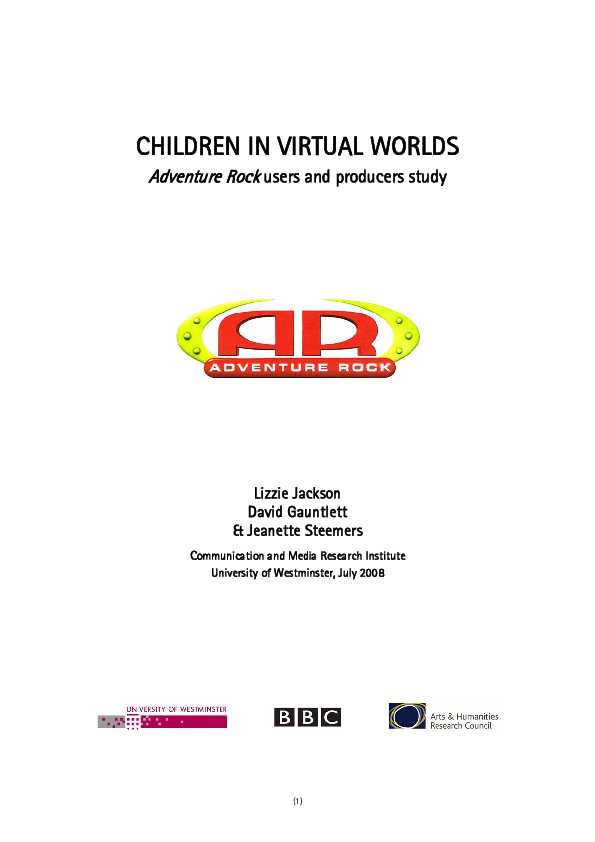 Pdf Children In Virtual Worlds Adventure Rock Users And Producers Study Lizzie Jackson Academia Edu